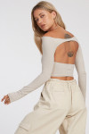 ITEM RUNS TRUE TO SIZE Squared neckline Cropped Fit Bodycon fit Thin halterneck fastening Layered cut-out effect Thumbholes Detachable sleeves Long sleeves